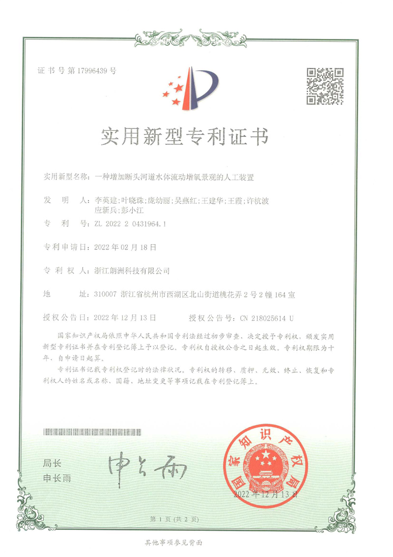 一種增加斷頭河道水體流動增氧景觀的人工裝置